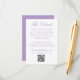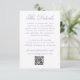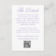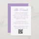 Keep your guests informed with this elegant lavender wedding details card. “The Details” is displayed at the top in graceful lavender calligraphy on a classic white background. Personalise this card with essential wedding information such as accommodations, transportation, reception details, and more. Add your custom wedding website and instructions beneath, with a convenient QR code included so guests can easily scan and access your site. The back showcases your monogram initials framed by a white botanical floral crest on a soft lavender-purple background, with space below for your names and wedding date. A beautiful and functional addition to your lavender-inspired wedding stationery suite.