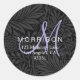 Elegant, Personalised Lavender Monogram Black Vintage Floral Botanical Pattern Return Address round sticker / envelope seal.