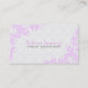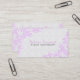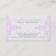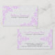 Elegant lavender floral lace swirls over white floral damasks pattern, business card template. For Event designers, wedding planners