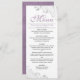 Elegant Lavender & Silver Swirls on White Wedding Menu
