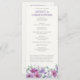 Elegant modern wedding program featuring watercolor floral borders in purple and lavender tones. Perfect for modern, boho and rustic themed spring, summer and fall weddings.