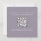 Add a touch of simplistic elegance to your lavender wedding with this lilac floral RSVP card template. Featuring soft watercolor flowers, modern typography, and an easy-to-scan QR code for guests to reply online, this design blends functionality with beauty. Perfect for couples seeking a seamless, elegant way to collect responses while showcasing their romantic, floral wedding theme.
