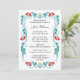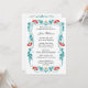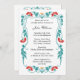 © Socialite Designs. An elegant leaf, floral and swirls border with beautiful colour combination of teal and red. The design is perfect for any celebration or gathering. Font style, text and paper type can be changed.