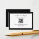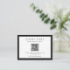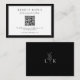 Elegant black and white QR code RSVP card with leaf monogram on the back.