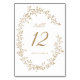 Elegant Leaf Wreath Botanical Gold Wedding Table Number
