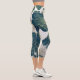 Elegant Leaves of Blue With Gold Lines Botanical Capri Leggings