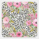 Elegant Leopard Print and Floral Design Square Sticker