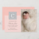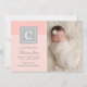 Announce your little one's arrival with this simple, elegant, and chic monogram block announcement. Personalise with your favourite newborn photo and your baby's information. Light blush pink, platinum grey, and white colours.
