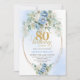 Elegant Light Blue Peony Floral Gold 80th Birthday Invitation