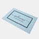 Elegant welcome doormat with a black script on a light blue background. Personalise with your family name or text.