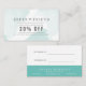 This simple and elegant salon refer a friend / referral card features your texts in black letterings with a light turquoise blue watercolored brush strokes on a white background. The reverse side features a white background with a turquoise blue border. Change the background colour and personalise it for your needs. You can find matching products at my store.