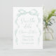 Elegant save the date cards feature hand drawn ribbon bow with modern handwritten script fonts in light green, clean and simple. Great for modern romantic wedding, unique fun whimsical wedding, elegant casual wedding.