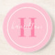 Elegant Light Pink Round Monogram Script Coaster