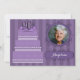 This elegant design features a monochromatic lilac striped background complemented by a coordinating birthday cake complete with a "90th Birthday" cake topper and pearls. Upload your own photo to the Victorian style frame and personalise with your name. The reverse side of this popular design features the same colour scheme with plenty of customisable text for you to add your party information.