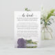 This beautiful wedding enclosure card is designed to give you extra space for whatever information your guests may need, including website, registry, reception, travel, accommodations, or any other details. The card features a gorgeous design with a single reflecting lilac, lavender, or dusty purple coloured rose and a lacy script calligraphy title reading "the details." The back is a deep marbled light purple colour.