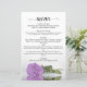These beautiful wedding menus are simple, elegant, and stylish while still being budget friendly and affordable. They feature a classy and glamourous design with a script calligraphy title and a single lilac purple coloured rose reflecting in a pool of water with waves and ripples. The back is a beautiful, light marbled purple colour with the names of the couple and wedding date at the bottom.