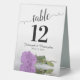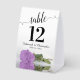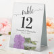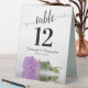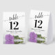 These tent signs will not only help your guests find their tables, they'll also make your wedding reception more beautiful. The design is both elegant and romantic featuring a single lilac purple coloured rose lying on its side reflecting in water with waves and ripples. The title is in lacy script calligraphy with bold numbers so your guests can easily find the right table. There is room for the names of the couple and the wedding date.