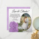 These beautiful wedding thank you cards are a wonderful way to show your appreciation to your friends and family for celebrating with you on your special day. They feature your wedding photo in an oval shaped frame with a single long stemmed lilac purple coloured rose lying on its side reflecting in water. The title reads "Love & Thanks" with room for a custom note and signature. Classy, romantic, and sophisticated, these cards are the perfect way to conclude your wedding celebration.