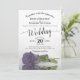 This gorgeous wedding invitation features a modern floral design with a single long-stemmed dusty purple, lilac, or lavender coloured rose lying on its side reflecting in a pool with waves and ripples. The design is simple, elegant, romantic and sophisticated, with lacy script calligraphy and fully customisable content.