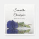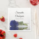 These beautiful wedding napkins will add style and class to your reception, rehearsal dinner, or other wedding related event. They feature a simple yet elegant and romantic design with a single long-stemmed deep navy blue coloured rose reflecting in a pool of water with waves and ripples. Above the rose are the names of the couple and wedding date.