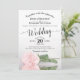 This gorgeous wedding invitation features a modern floral design with a single long stemmed pink rose lying on its side reflecting in a pool with waves and ripples. The design is simple, elegant, romantic and sophisticated, with lacy script calligraphy and fully customisable content.