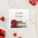 These beautiful wedding napkins will add style and class to your reception, rehearsal dinner, or other wedding related event. They feature a simple yet elegant and romantic design with a single long-stemmed red rose reflecting in a pool of water with waves and ripples. Above the rose are the names of the couple and wedding date.