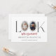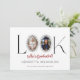 Celebrate your graduate's milestone with this elegant "Look Who's Graduated!" photo graduation announcement. This design features a striking 'L' and 'K' with customizable photo placeholders in ornate frames, perfect for showcasing your graduate's journey from baby to cap and gown. The heartwarming phrase "Who's Graduated!" is beautifully rendered in a stylish red script, above the graduate's name and school details. It's a sophisticated way to share your pride and joy with friends and family. Announce your special occasion with a touch of class and a personal touch, making this announcement a cherished keepsake.