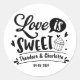 Elegant Love Is Sweet Calligraphy Heart Wedding Classic Round Sticker