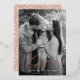 Elegant Valentine's Day card featuring your vertical photo with "Love" displayed in a rose gold foil calligraphy script. Personalise the photo Valentine's Day card with your custom greeting and family name. The foil Valentine's day card reverses to display a rose-beige and white heart pattern.