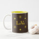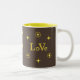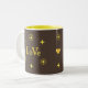 Elegant golden love text and stars on brown Mug.
