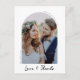 This modern design features a photo arch with Love & Thanks in hand-lettered script underneath. There is room on the back for a personalised message.
