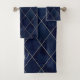 Elegant Luxurious Argyle Royal Blue Beige Gold Bath Towel Set
