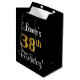 This stylish, luxurious, and sophisticated birthday themed giftbag design features the ordinal number "38th" having a large faux/imitation gold-like gradient pattern, in addition to a birthday greeting message and an editable recipient name in a script-style font. It also has a black-coloured background. A stylish gift-bag like this might be used when wrapping presents being given to somebody in celebration of their thirty eighth birthday. [~Z0000513]