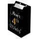 This luxurious, stylish, and sophisticated birthday themed giftbag design features the ordinal number "4th" having a large imitation/faux gold-inspired gradient pattern, along with a birthday greeting message and a personalised recipient name in a script-style font. It also has a black-coloured background. A luxurious birthday themed gift bag like this might be a fun way to wrap a gift or present being given to somebody who is celebrating their 4th birthday. [~Z0000513]