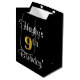 This stylish, sophisticated, and elegant birthday themed gift bag design features the ordinal number "9th" having an imitation/faux gold-like gradient pattern, along with a birthday greeting message and a custom recipient name in a script-style font. The background is coloured black. A gift bag like this might be a fun way of wrapping a birthday present or gift being given to somebody who is celebrating their 9th birthday. [~Z0000513]