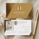 Make a bold and sophisticated impression with our luxury gold law firm business card, designed for attorneys, legal groups, and law professionals who value elegance and professionalism. The front features a striking gold stripe design along with a column monogram crest logo, perfect for adding your monogram and business name to create a distinguished, executive look. The reverse side maintains a clean and elegant layout, incorporating the gold stripe along the corner. Add your professional portrait, contact information, services, and other key details for a polished, high-end presentation. Ideal for lawyers, attorneys-at-law, managing partners, senior partners, associate attorneys, corporate counsel, criminal defense lawyers, family law attorneys, personal injury lawyers, estate planning attorneys, real estate lawyers, immigration attorneys, intellectual property lawyers, tax attorneys, civil litigation attorneys, boutique law firms, and legal consultants. This versatile and fully customizable design ensures your law firm or legal group stands out, conveys authority, and leaves a memorable impression on clients and colleagues. Designed by ©Moodthology Papery.