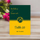 This elegant green and gold wedding table number is perfect for a modern wedding. the luxury design features elegant green calligraphy on a gold background.