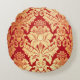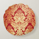 Elegant Luxury Retro Red Gold Damask Pattern Round Cushion