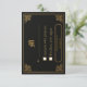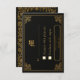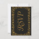 Sophisticated RSVP card design featuring dark gold floral borders on a rich ivory textured background. Sized 5x3.5 inches, perfect for weddings and formal events. Includes a stylish "RSVP" calligraphy text on the back and a clean front layout for guest names and attendance options. Fully customisable and print-ready for a refined look.
