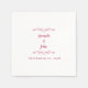 Elegant, classic Wedding napkin features a chic design in trendy magenta red on a transparent background that showcases your choice of colour napkin. This modern simple design provides timeless, classic sophistication. Personalise names of couple and event date in elegant magenta red lettering and script . These are a perfect accompaniment for any wedding party! Be sure to see the collection link on this page to view all of the matching items! Please direct questions or custom requests to invitationsuites@gmail.com.