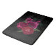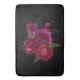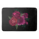 A bath mat with a beautiful image of a bouquet of magenta and pink flowers. Black background.