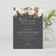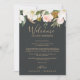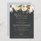 These elegant magnolia black welcome letter & itinerary cards are perfect for a modern classy wedding. The moody floral design features watercolor blush pink peonies, stunning white magnolia flowers and cotton with gold and green leaves in a luxurious arrangement on a dark background. The front of the card features a welcome letter and the back of the card features the wedding itinerary. These notes are perfect for destination weddings and hotel guest welcome bags.