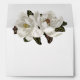 Send your wedding invitations in a spring floral pattern design featuring elegant watercolor magnolia blossoms. This hand painted design is great for ivory, white and sage floral themes. Choose an envelope colour and click the custom button to change name, address information, city, state and zip code on the front.
