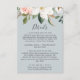 This elegant magnolia blue grey details enclosure card is perfect for a modern classy wedding. The soft floral design features watercolor blush pink peonies, stunning white magnolia flowers and cotton with gold and green leaves in a luxurious arrangement on a light blue grey background.