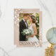 Send a heartfelt message of gratitude with this elegant wedding thank you card. Featuring a sophisticated neutral beige border accented with delicate white botanical leaves and magnolia blossoms, this design beautifully frames your favorite wedding day photo. The classic "THANK YOU" serif typography is enclosed in a minimalist gold-tone frame for a high-end, polished look. This customizable template allows you to include your names and wedding date, making it a perfect, personalized keepsake for your friends and family.
