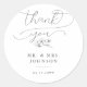 Elegant Magnolia Modern Script Wedding Thank You Classic Round Sticker