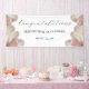 Elegant Magnolia Pink and White Floral Wedding Banner for your Reception Accessories. This hanging banner is designed with pink and white magnolia flower accents on a White background. The text includes: Congratulations, the Bride & Groom's First Names and Wedding Date. To personalise, simply insert your details into our easy template, replacing the sample text.