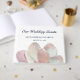 Elegant Magnolia Wedding Guest Book designed with a soft pink and white magnolia flower on a white background. The text includes: Our Wedding Guests, the Couple's Names, and Wedding Date. To personalise, simply replace the sample names with your own, using our easy template.