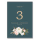 This elegant magnolia teal and white table number is perfect for a modern classy wedding. The moody floral design features watercolor blush pink peonies, stunning white magnolia flowers and cotton with gold and green leaves in a luxurious arrangement on a teal background. The card prints on the front and back (double-sided). Add each table number that you need to your cart individually.