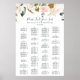 This elegant magnolia white alphabetical seating chart poster is perfect for a modern classy wedding. This sign can be used to organize your guests alphabetically or by table number. The soft floral design features watercolor blush pink peonies, stunning white magnolia flowers with gold and green leaves in a luxurious arrangement. This wedding poster includes enough room for up to about 120 guests. Make room for more (or less) guests by clicking the "customize" button and decrease or increase the size of the font. In addition to the placement of each guest, personalize this sign with the names of the bride and groom and the wedding date.